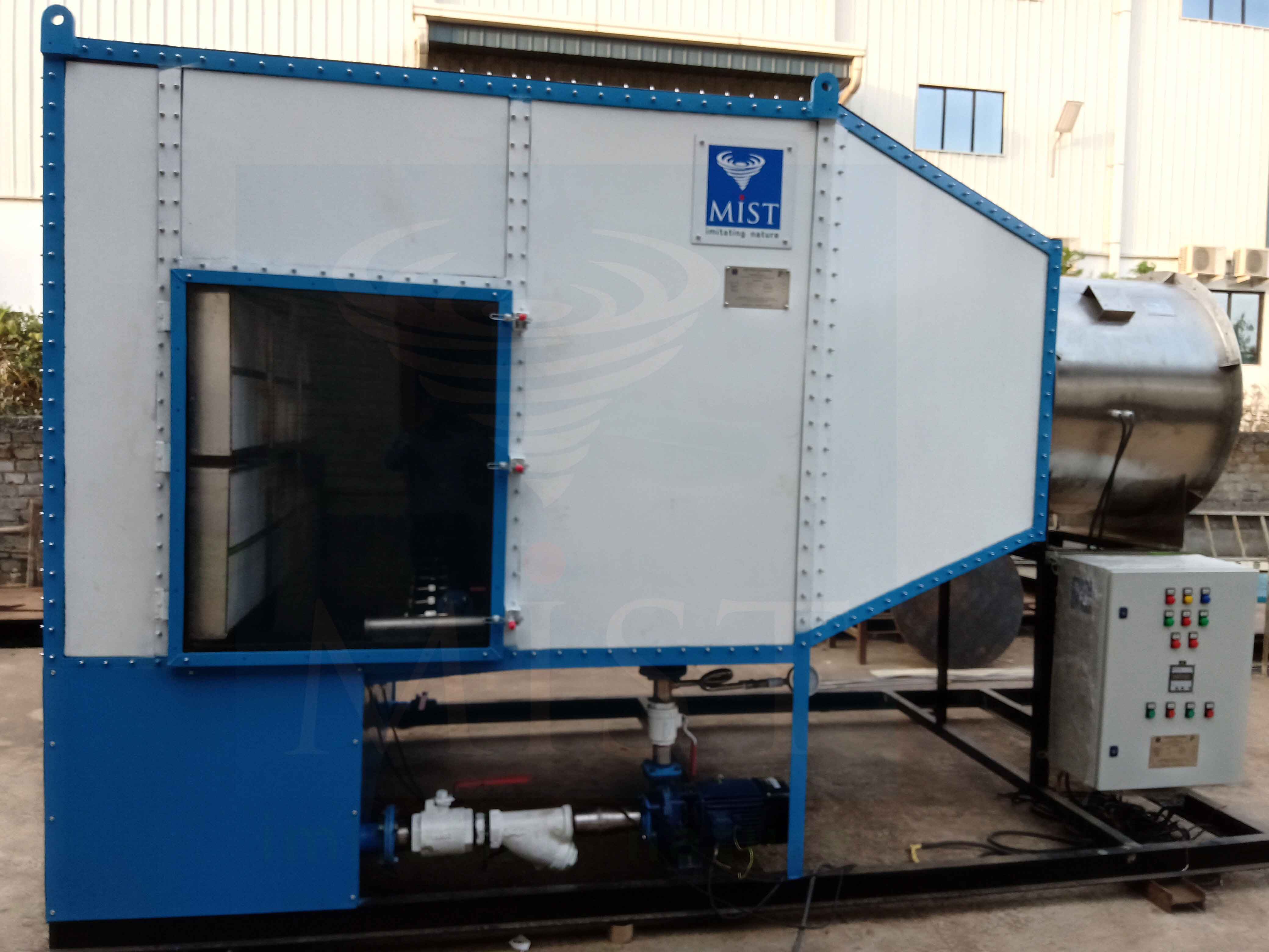 - Most Efficient air cooling achieved with air temperature upto WBT of air at minimum power & water consumption.